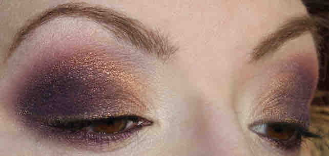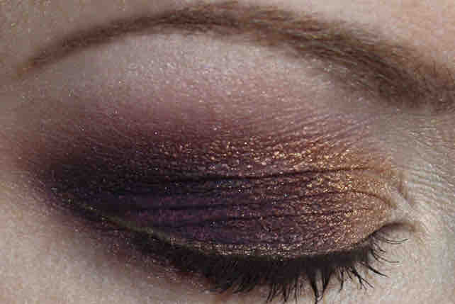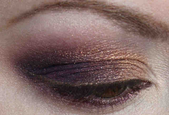 Er ist Fleur de Fab von Magnolia Makeup nicht unähnlich, aber hier handelt es sich um einen viel feineren Schimmer, der seinerseits zwar (anders als bei Fleur de Fab) nicht glitzert, dafür aber mit der Grundfarbe vollkommen durchmischt ist. Missy von MissXtravaganz hat vor einiger Zeit auch mal ein schönes AMU damit geschminkt. Leider ist Mephisto aber echt auch einer der schwierigsten Lidschatten, die ich je erlebt hab. Ihn in der geschilderten Durchmischung homogen aufs Lid zu kriegen, ist unheimlich diffizil. Daß ich im vorliegenden Fall mit einem kupferfarbenen Geleelidschatten von Estée Lauder ein wenig reingeblendet hab, hat unverhofft sehr geholfen, das Ganze ein wenig kompakter und stabiler zu halten. Nun aber der Reihe nach.