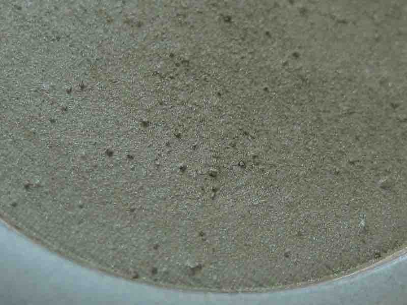 Und, ein alverde Lidschatten hat genau das gleiche „Problem“, es sieht teilweise so aus, als ob die Pickel wie etwa Blasen im kochenden Pudding enstanden sind: Da wird die Masse ja zu heiß und damit Luft entweichen kann, bildet sich von unten eine Blobb-Blase und die Luft tritt dann aus. Auch hier sieht es so aus, als ob es solche Luftblasen seien. Vielleicht kann man es ja auch den Bildern erkennen.