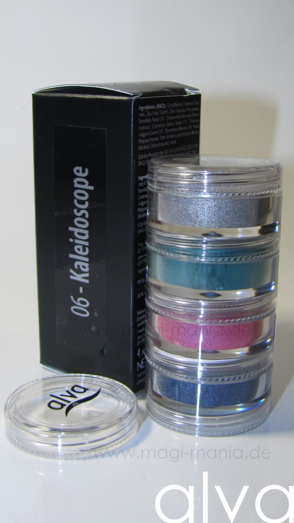 „Kaleidoscope“ ist eines der Stacks aus der ALVA Green Equilox Kollektion, von denen es sechs Stück an der Zahl gibt. Die Farben dieser Viererkombo haben mich am meisten angesprochen, sodass, als mir TheSource anbot eines ihrer Sets zu überlassen – lieben Dank – ich dieses wählte. Sie hat auf Jabelchens Blog einen Gastbeitrag zu ALVA und den losen Minerallidschatten verfasst.