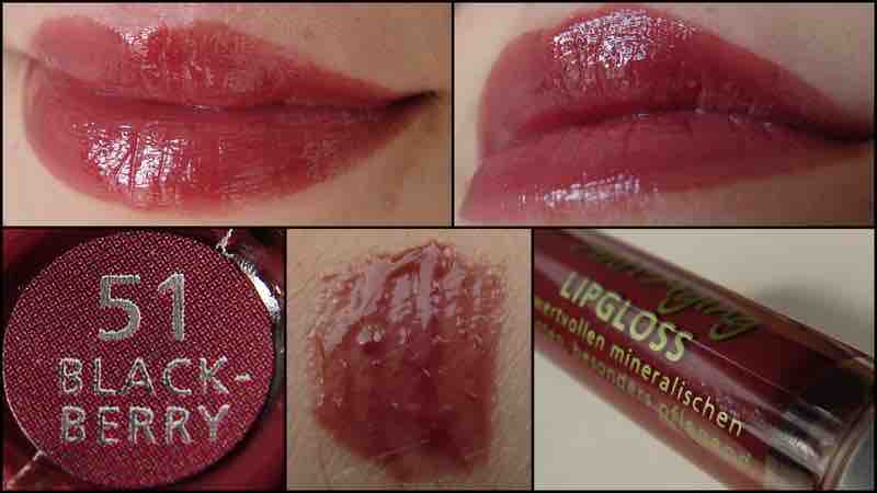 „Black Berry“ ist bereits in der Tube extrem verführerisch. Es ist ein schimmerfreier Gloss mit einer sehr ungewöhnlichen Farbe. Es sieht aus wie Pflaumenmus. Der Auftrag hier ist trotzt dünner, recht transparenter Schicht sehr intensiv. Zwar entspricht die Farbe nicht meinen Geschmack, aber habe sehr viel Lust mit ihr zu experimentieren auf verschiedenen Grundierungen.