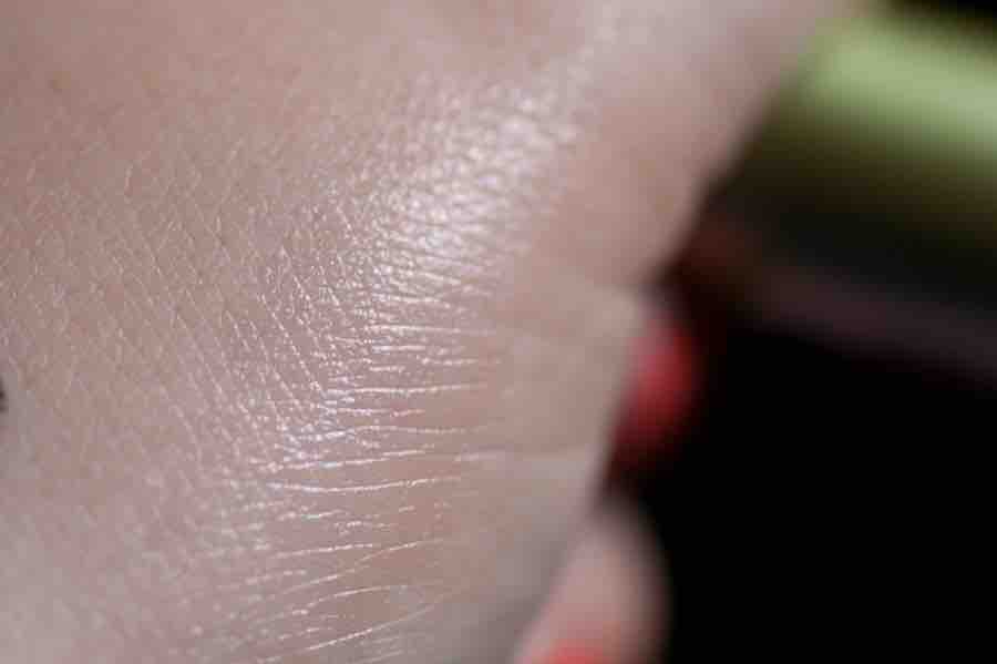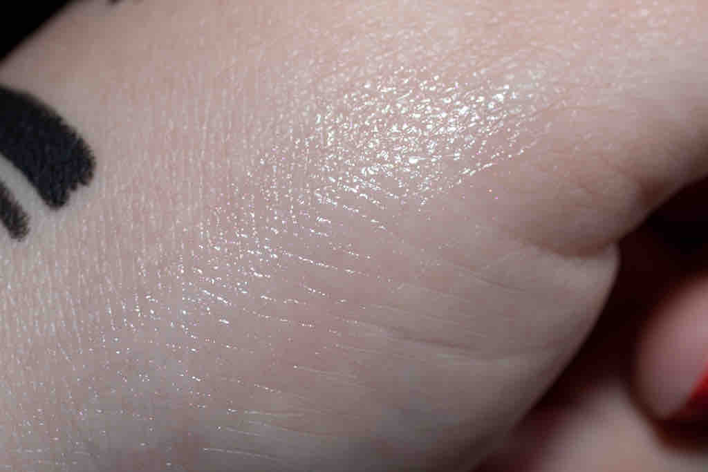 Leider bin ich hier vollkommen dem Halogenlicht in der Filiale auf den Leim gegangen. Was vor Ort noch sichtbar funkelte und mich an eine schwächere Version der MAC Dazzle Lipsticks oder die Dazzleglass erinnerte, ist zu Hause bei normalem Licht weder auf dem Handrücken noch auf den Lippen erkennbar. Mit einigen Verrenkungen, einer Vergrößerung um 500% und Photoshop vielleicht schon, doch das ist natürlich kein Kunststück. In der Hinsicht leider enttäuschend.