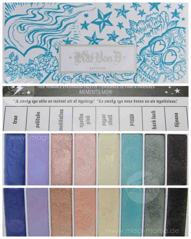 Für die Übersicht und Infos zur KAT VON D "Memento Mori" Palette gibt es diesen Post - hier gibt es nun alle Lidschatten einmal ein wenig näher betrachtet - im Pfännchen und als Unterarm-Swatch auf ...