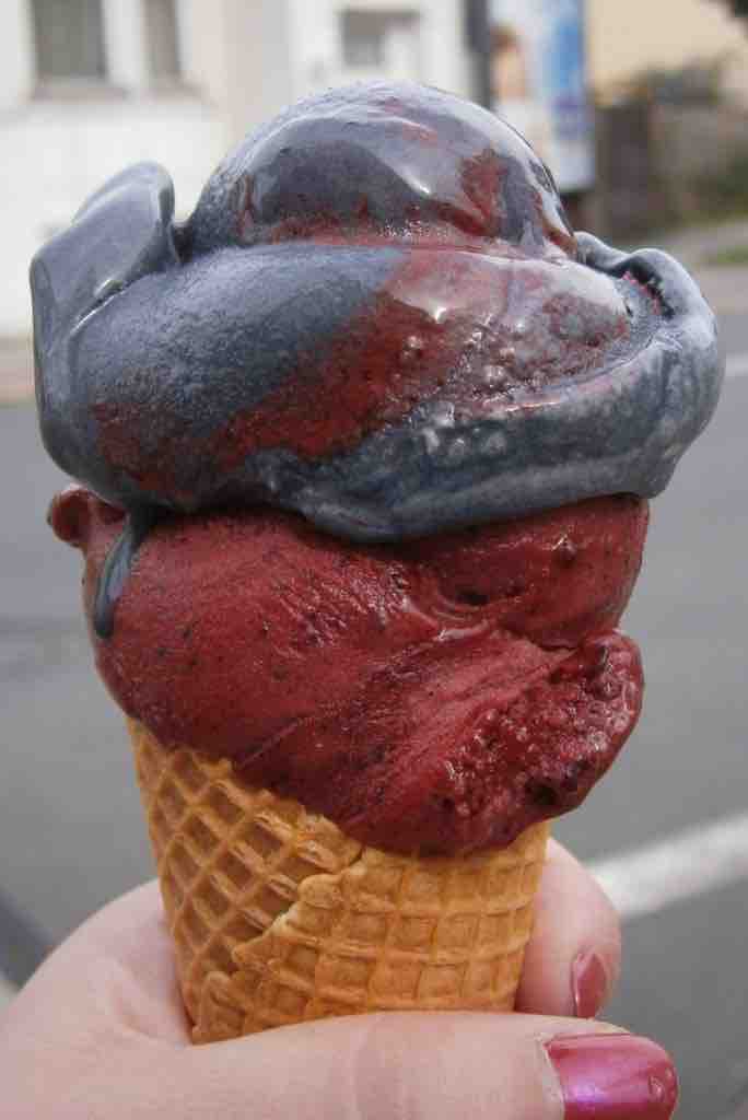Auflösung 11.8.: oben Lakritzeis unten Blaubeere, mein Favorit in unserer Eisdiele :)