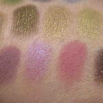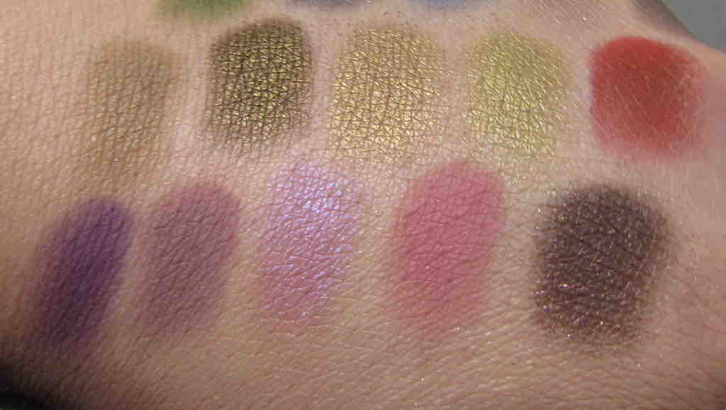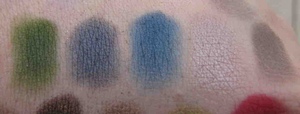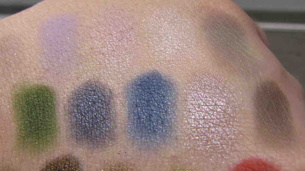 Ich muss zugeben, ein wenig skeptisch war ich schon – andererseits habe ich mir mit ‚African‚ aber auch eine Farbe herausgesucht, die den meisten anderen doch überlegen war. Beim Testerpatschen erschienen mir die Lidschatten für die professionellen Zwecke, für die sie konzipiert wurden, auf jeden Fall geeignet, aber ich bin inzwischen etwas abgeneigt, was überpigmentierte Produkte angeht und sehe eine solche Eigenschaft als eher hinderlich an. Zudem waren zwar viele Farben, die manch extrovertierter Anwender woanders vermisst, sehr brillant und auffällig, aber dennoch nicht so spannend, dass ich mich hätte schwer entscheiden können. Es hieß eher „African“ oder keinen. Denn wie ihr hier an den Random-Swatches sehen könnt, zieht er sofort alle Blicke auf sich. Aber ich werde sicherlich noch etwas genauer auf die Marke zu sprechen kommen.