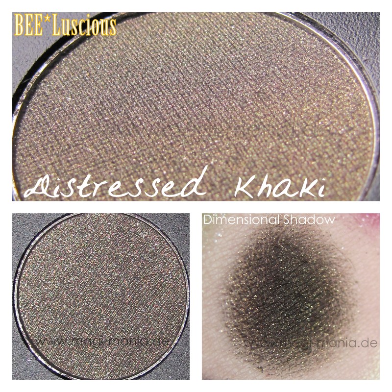 Wie auch bereits im vorangegangenem Look der „Moody Blue“ am Auge eigentlich nur „schwärzlich“ herauskam, so passiert es auch (insofern man nicht vielleicht viel tupft und ggf. ein Medium verwendet) mit „Distressed Khaki„. Einer von beiden hätte in der Palette genügt, um das Schattier-Schwarz abzudecken und stattdessen hätte ich ein Grau oder Braun sinnvoller gefunden.