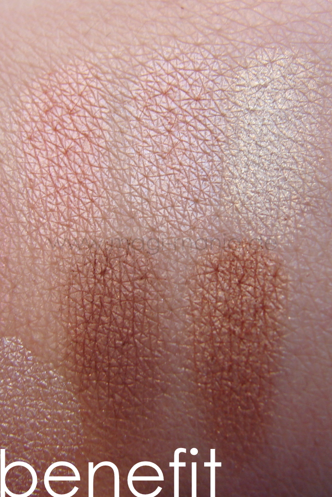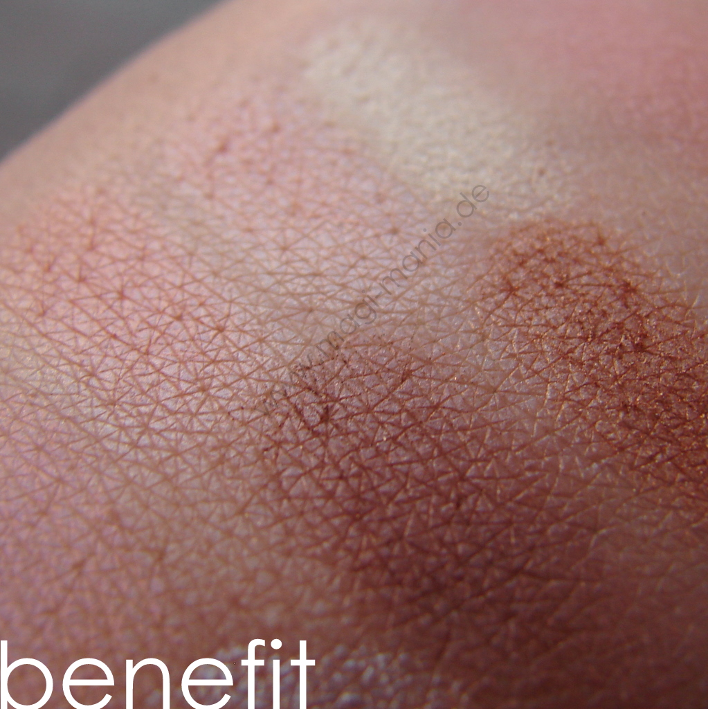 Neben den Klassikern gibt es auch noch ein sehr, sehr nudes Gloss (keine Erfahrungswerte) und 5 Lidschatten, die mich aber nicht überzeugen konnten. Die 3 helleren Nuancen waren OhhhKeeeeh, nettes Goodie – die zwei dunkleren *naja*. So kann man Kunden mit so einem Set auch durchaus von weiteren Käufen verschrecken. Es bleibt also ein Schnupper-Set, dessen Preis für BENEFIT-Verhältnisse klein ist (37,00€) und vom Wert her OK ist. Ich fasse a la zaz zusammen: