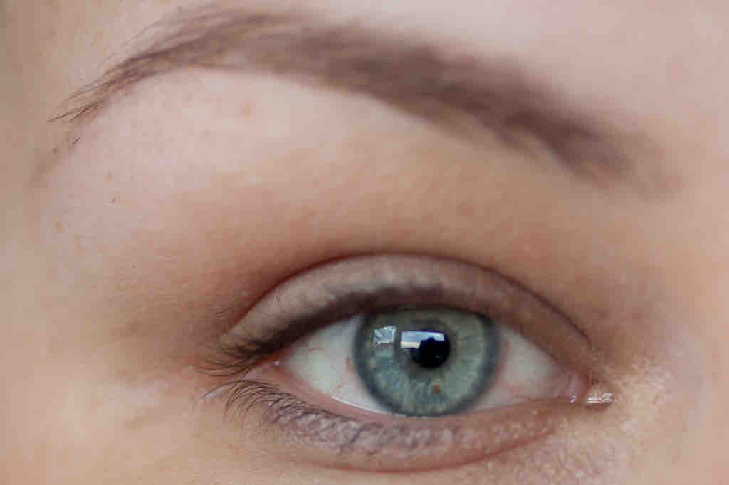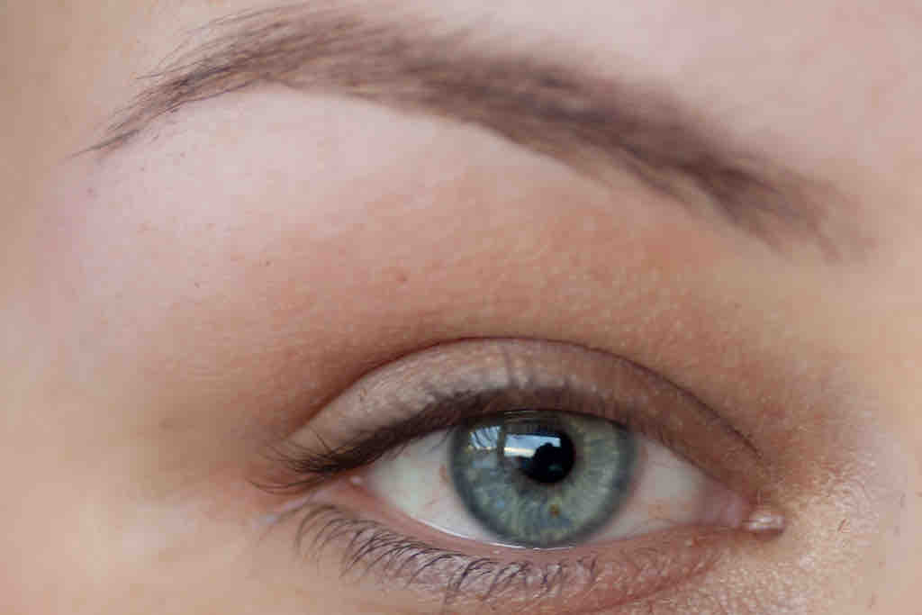 Die Textur ist recht pastös – und erinnert dadurch absolut an die „Vorlage“. Man zieht einen Streifen direkt im Brauenbogen und verwischt das Ganze mit dem Finger. Ich denke, in den Winkeln des Auges könnte es sich durchaus gut machen. Wer mag, kann natürlich auch noch einmal mit Lidschatten setten. So wird das Ganze auch gewiss lange halten.