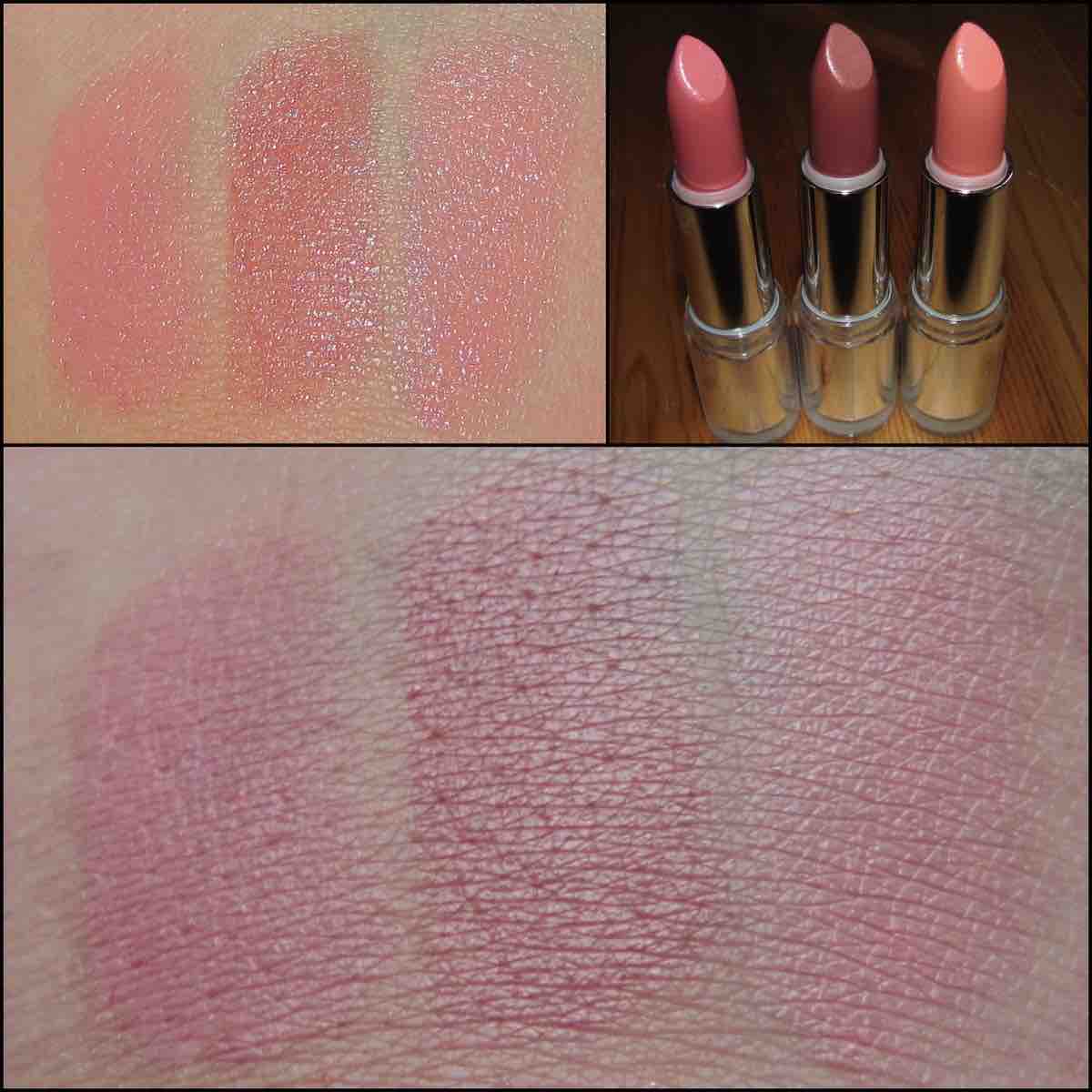 Ich beginne zunächst mit den Lippenstiften. Sie sind super schön verpackt (wenn auch ich es schlichter lieber mag), die Farben wirken auf den ersten und auch auf den geswatchten Bilck toll und der Auftrag ist himmlisch: man könnte meinen, man reibe sich mit Butter ein. Aber bereits wenige Sekunden später fühlten sich meine Lippen irgendwie taub an. Also nicht wirklich ein Effekt, nein nein, aber irgendwie vertrage ich nach vielen Versuchen das Gefühl irgendwie nicht. Hinzu kommt, dass diese Kremigkeit auch eine Glitschigkeit mit sich bringt, die den Lippie zum Rutschen bringt – noch mehr, als die tollen Moisture Lippies von CATRICE (siehe dieser Post). Abschließend sind die Farben sehr vom Hautton beeinflussbar, weil besonders „Rose“ und „Coral“ eine Mischung aus Pink und Orange-Nuancen sind. Sie wirken fehl am Platz zu meinem Teint und das Finish gefällt mir nicht. Der „Brown“ ist eine tolle YLBB-Farbe (Your Lips But Better) an mir, aber auch hier gefällt mir dieser Frost nicht. Meine Lippenkonturen sind sehr frasig und wirken mit dieser Textur irgendwie angeschwollen. Das ist ein Effekt, den ich häufig erlebe, daher möchte ich nicht den Eindruck vermitteln, dass diese Lippenstifte besonders schlecht seien, aber ich habe mir eher etwas in Richtung „Gentle Nude“ erhofft und finde leider in keinem der Dreien einen wirklich besonderen Ton oder Habenmuss-Lippie. Ich würde raten: Wenn ihr Nude-Lippies sucht, vergleicht gewissenhaft mit den Farben aus dem festen Sortiment. Bloß nicht vom LE-Grundgedanken täuschen lassen (wobei das eigentlich immer gelten sollte).