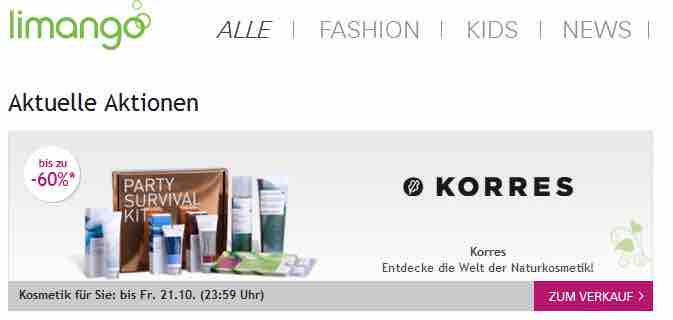 Bei LIMANGO startet heute bis zum 23.10. eine KORRES Aktion mit gemschten Produkten.