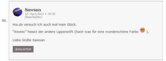 @Beautyjagd:Ja,der Atomic ist schon ne tolle Farbe. :inlove: