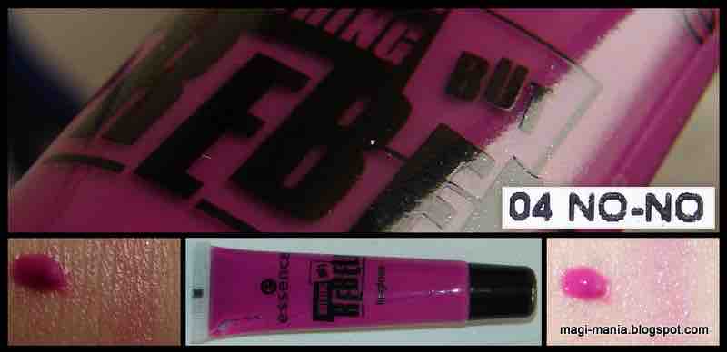 Und der totale Flop: der Gloss in „No-No“ – sieht schön aus, ist auf den Lippen aber kaum zu sehen. Sogar auf „ausradierten“ Lippen, sieht man nur etwas Glanz. Dazu Textur zum Verschwinden – hält nicht. Ich bin aber doppelt sauer, weil eben keine Tester da sind und so mein Gloss schon benutzt war. K*tzt mich das an. Ich beschwere mich bei ESSENCE. Gerade Glosse.