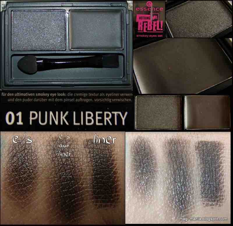 Mitkommen durfte allerdings auch das Smokey-Eyes-Duo für 2,25€, das einen antharzit-farbenen Puderlidschatten sowie einen schwarzen – was ich erst jetzt beim Lesen merkte – Eyeliner beinhaltet (den „Pinsel“ nehme ich jetzt mal einfach nicht ernst). Ich ging die ganze Zeit davon aus, das sei eine Base. Als solche wollte und habe ich sie auch benutzt, aber es wundert mich nicht, dass Paddy sie als Eyeliner bemängelt. Es ist wirklich sehr sheer. Aber das Lid damit grundiert sah super aus. Schön gleichäßig und es rutschte nicht sofort in die Falte. Ich konnte also in Ruhe die Lidschatten darauf auftragen und zusehen, wie die Base sie schön rauchig erscheinen ließ. Der dunkle e/s aus dem Duo hat mir dabei besonders gut gefallen. Wirklich tolle Textur. Lies sich super „smokey“ ausblenden. Den Kauf bereue ich nicht.