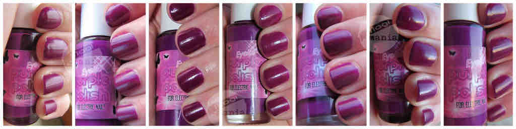 Die Marke an sich erfreut sich nicht gerade meiner Sympathie, aber die Lacke waren bisher wirklich erfreulich. Neulich griff ich zu einer der älteren Farben des neuen Sortiments, nämlich dem „Purple Polish„. Ein sehr intensiver Magenta-Pflaume-Ton ohne Schimmer aber mit mattiertem Finish. Dieses ist aber nach einem Tag schier verschwunden. Leider wies dieser mir einzige bekannte matte Lack von EYEKO nicht die gewohnt zuverlässige Textur auf. Der Pinsel wollte sich nach einigen Zügen nicht mehr richtig an der Spitze spreizen. Zudem war das Stäbchen stets übermäßig voll mit der Masse. Natürlich kann man das abstreifen, aber ich habe nicht daran gedacht, weil ich es sonst auch nie in dem Umfang machen muss. Also irgendwie war der Komfort nicht so pralle. Ich hatte beim Applizieren schon so meine Schwierigkeiten.