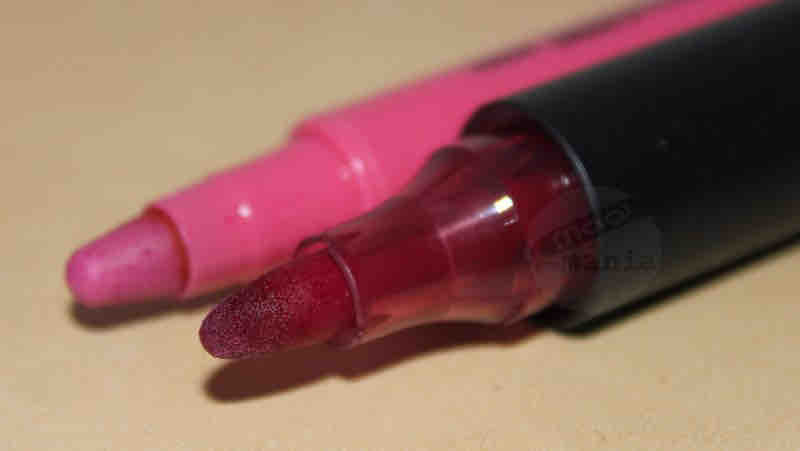 Meine Lippen beim oben-ohne-Look wurden von Lipstains geschmückt. Zunächst dem helleren der beiden Filzstifte aus der ESSENCE 'You Rock!' Trend Edition namens 'Let me Rose' und anschließend aus Fun ...