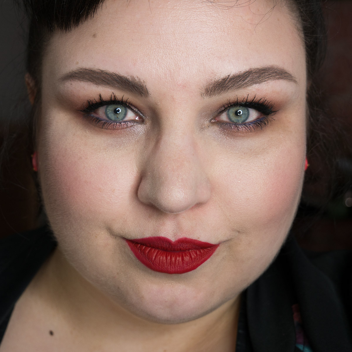 Mit den Makeup-Bürsten ist der Auftrag nicht nur schneller und ebenmäßiger, sondern erschien mir auch das matte Finish nicht so intensiv herauszukitzeln. Der Real Techniques Pinsel ist unangenehm aber effizient. Das Ergebnis mit ihm ist katastrophal; hier nach