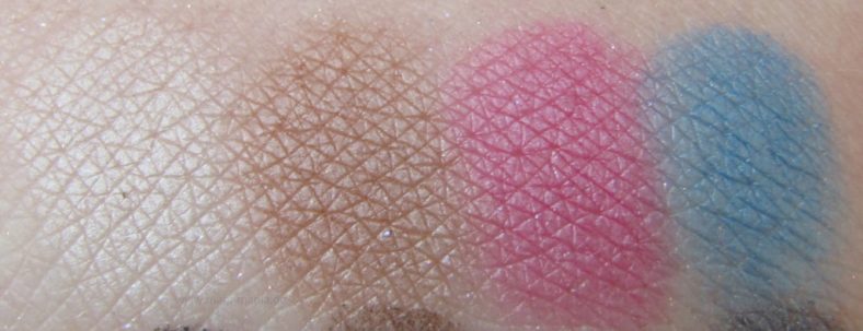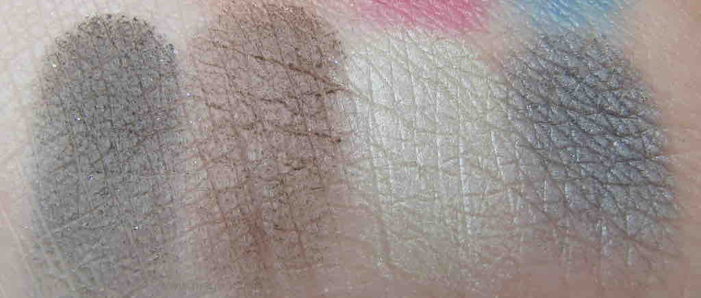Die Deckkraft ist bei ca. 90% bei mehrfachem Auftragen und nie ganz deckend, wie typischerweise „echtes matt“. Kein Schimmer – keine Reflexe: man bekommt also wirklich nur die eine Farbe. Zwei buntere Farben, die mich nicht überzeugten, und eben die neutralen, die ihr sehen könnt, die ich dann schon spannender fand. Insbesondere der Beige-Ton erinnerte mich sehr an den Anblick, den MAC „Shroom“ auf meinen Lidern hinterlässt.