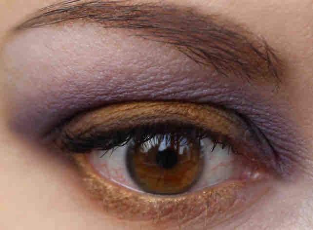 Das Lidschattenquad dieser Kollektion, sowie deren Promobild gefallen mir super, super gut! Kaufen kommt zwar nicht in Frage, denn ich habe entsprechende Farben bereits, aber ich bin fasziniert und begeistert von der Farbkombination in der Palette, insbesondere von der Paarung Lila / Okker, sodaß ich mich entschlossen habe ein Makeup zu schminken, das sich farblich an dieser Kollektion orientiert.