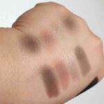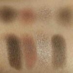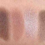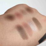 Als negativ empfinde ich die Ähnlichkeit der Töne auf dem Lid. Trotz leichten Perlglanzes ist der Ton links in der Palette dem dunklen, matten Braun aufgetragen zu ähnlich für ein Quad um 50€. Entweder mehr Schimmer oder eine deutlich ausgeprägter Intensitätsunterschied wäre wünschenswert gewesen. Aber auch das rotlastige Taupe und das Dunkelbraun ähneln sich vor allem auf Base und verblendet mehr als mir lieb ist – und als ich vom Swatchen am Counter geahnt habe.