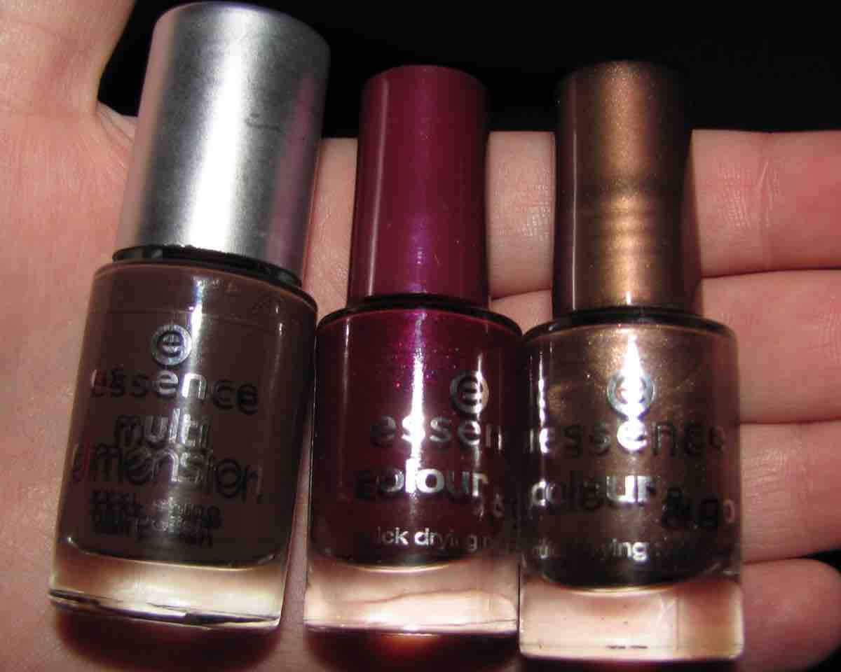 den braunen essence nagellack habe ich auch. der hat so nen schönen glitzer.. kommt nur leider auf den nägeln gar nicht raus 🙁