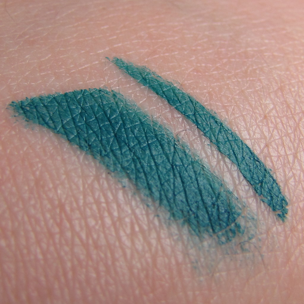 ich greife lieber zu meinen pinsel und einem gel/cremepöttchen als zu einem stift, da bei mir der lidstrich mit stift immer zu dick wird. wirklich eine schöne farbe, aber ich bin der total neutrale looks typ (heute habe ich einen dunkellilanen lidstrich (bobby brown LE der name fällt mir gerade nicht ein) und der sieht aus wie schwarz und ich komm mir schon „experimentell“ vor)