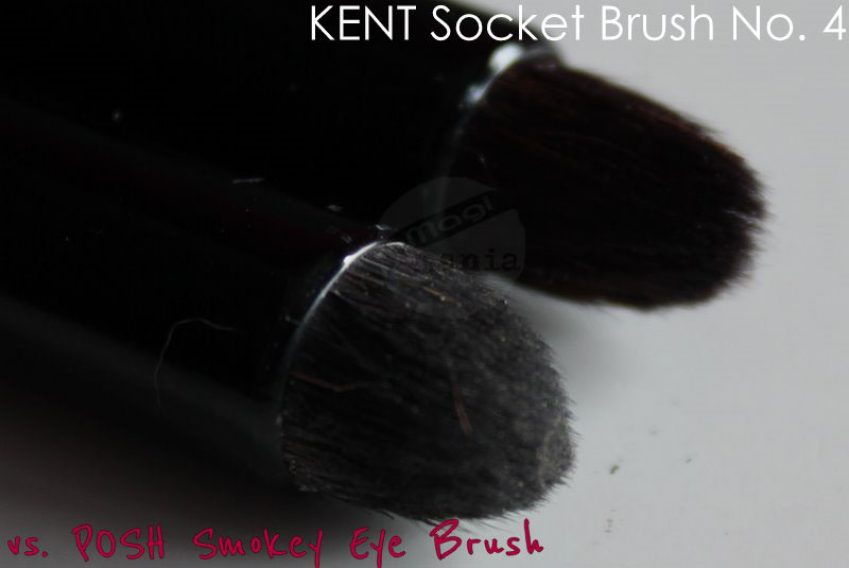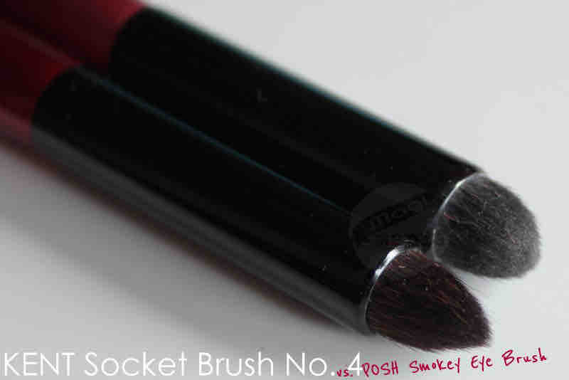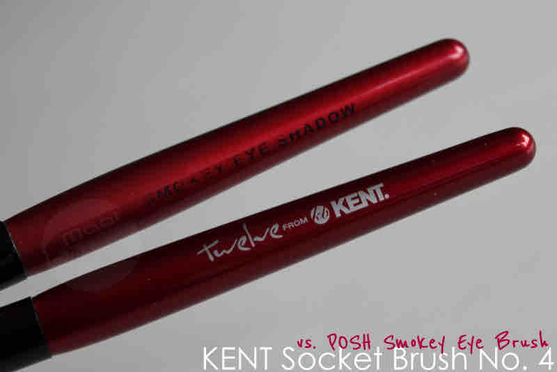 Für die Lidfalte verwende ich mit Vorliebe die Smokey Brush von Sephora. Es ist der einzige Pinsel von Sephora, der mir rundum gefällt (habe aber natürlich nicht alle probiert 😉 , sondern nur ein zwei Entäuschungen hinter mir). Die Form ist dem deines Poshs gar nicht unähnlich, also rund gekappt, nicht spitz wie der Kent. Es ist ein Doppelpinsel, auf der anderen Seite ist ein schräger Linerpinsel, der auch was kann. Eines meiner Lieblingsstücke 🙂