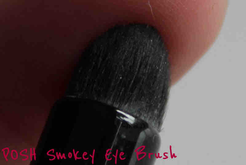 Die Lage: POSH ist ein recht kleiner US-Shop mit einem überschaubarem Pinselsortiment – alles in allem nicht sonderlich lukrativ. Ich habe noch einen weiteren Pinsel, der relativ durchschnittlich ist. Wäre da nicht deren Meisterk für $10: Smokey Eye Brush. Ein Rundpinsel recht üppigen Querschnitts mit gut gestuftem Haar, kurz gehalten, perfekt geschnitten und locker angeordnet. Mangels eines zweiten Exemplars verwende ich ihn einzig zum Weichzeichnen harter, dunkler und bunter Lidschattenkanten. Zu gern hätte ich einen weiteren für die Arbeit in der Lidfalte. Er ist größer als übliche Rundpinsel dieser Art aber bietet auf Grund der kurzen „Frisur“ viel Widerstand und Kontrolle ohne dabei grob zu sein. Also rundum mein Ding.