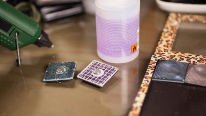 ohne den Kleber und nach leichter Biegung möchte der Puderstein nicht mehr so gern mit dem Plastikgitter knuddeln