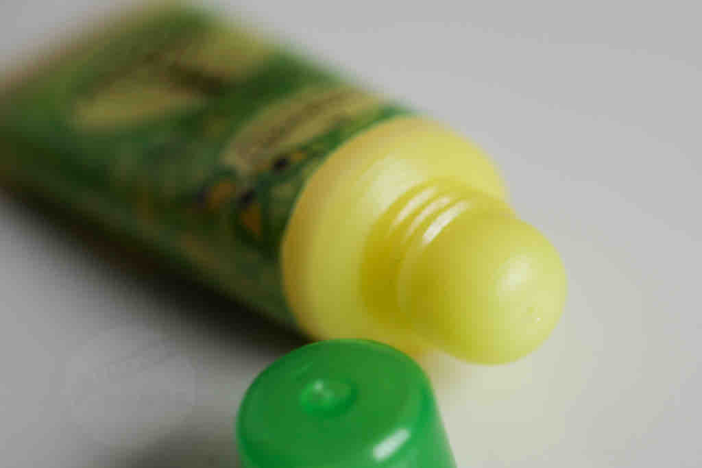 Und das überrascht mich. Denn die Inhaltsstoffe sind gar nicht so viel anders. Selbst mein verhasstes Rizinusöl, das in nahezu allen Lippenprodukten enthalten ist, steckt in der Tube. Es muss das lustige Ximeniaöl sein. Das habe ich ja auch als „Rohling“ und es ist sehr amüsant. Wie Honig zieht es meterlange Fänden, klebt zunächst, aber verteilt ist es wie ein Balsam. Schmu nutzt es immer als Handcreme. Es scheint für diesen geligen Touch verantwortlich zu sein… Das gilt aber nicht für den Lippenbalsam. Der ist recht fest und dezent milchig-transparent.