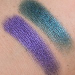 Die Textur ist definitiv keinem der Finishes zuzuordnen, erinnern aber ein wenig an die polarisierenden Velvets mit einer trockenen, matten Basistextur, die von Schimmerpartikeln durchsät ist. Anders als bei den Velvets jedoch, sind diese bei den MAC Colourdrenched Pigment feiner und vor allem nicht „nur“ sibern, sondern je nach Shade sogar „multicolor“, schimmern also in verschiedenen Farben.