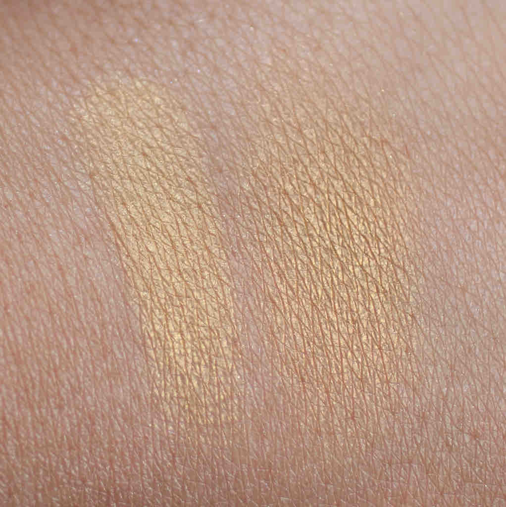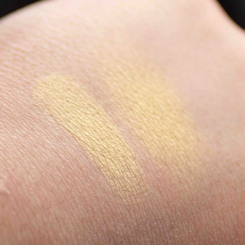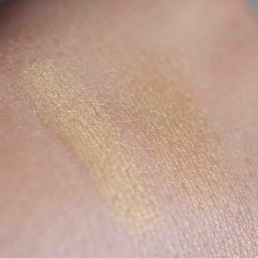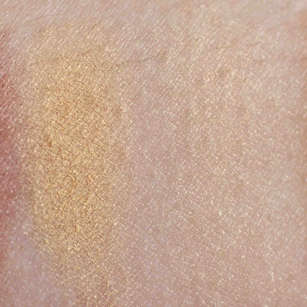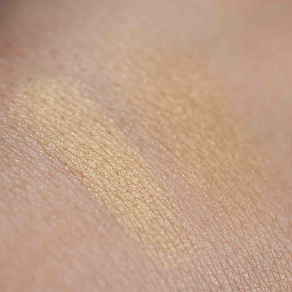 Auf grundiertem Unterarm und vor allem am Lid sah das Ganze leider nicht mehr so schön aus. Der Pearl geht unter, die Textur ist ein wenig nervig und wirkt stellenweise ein wenig mehlig. Solo auf der Haut vermutlich nur bei sehr dunklen Hauttypen wirklich spannend, da zu transparent, um „gesund“ auf helleren Typen auszusehen.