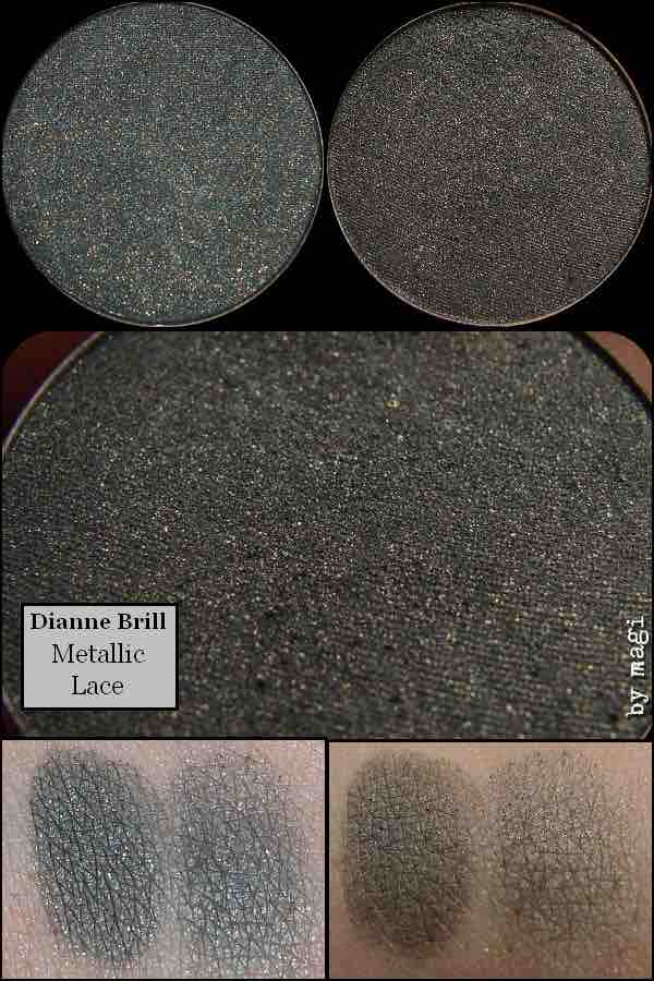 Meine Nummer 1, die ich auch in meinem MAGI SCHMOKEY EYE Tutorial verwendet habe, ist der „Metallic Lace“ von DIANNE BRILL aufgrund seiner wunderschönen, neutralen, grauen Farbe und den schmeichelnden, goldenen Schimmerpartikeln.