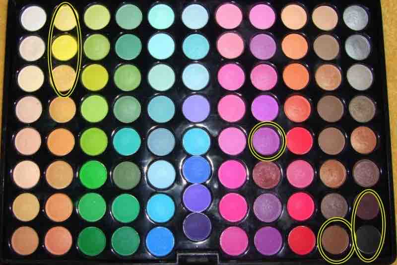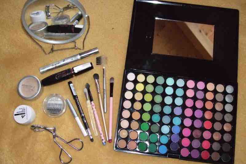 88er Matt Palette, P2 boulevard eye shadow in 060 Chicago streets (allerdings nur das weiß ganz oben zum Highlighten und für den Innenwinkel), Base ist von Manhattan, Pinsel gemischt von Claire´s und H&M, Wimpernzange, Mascara von Agnes b, Alverde Camouflage