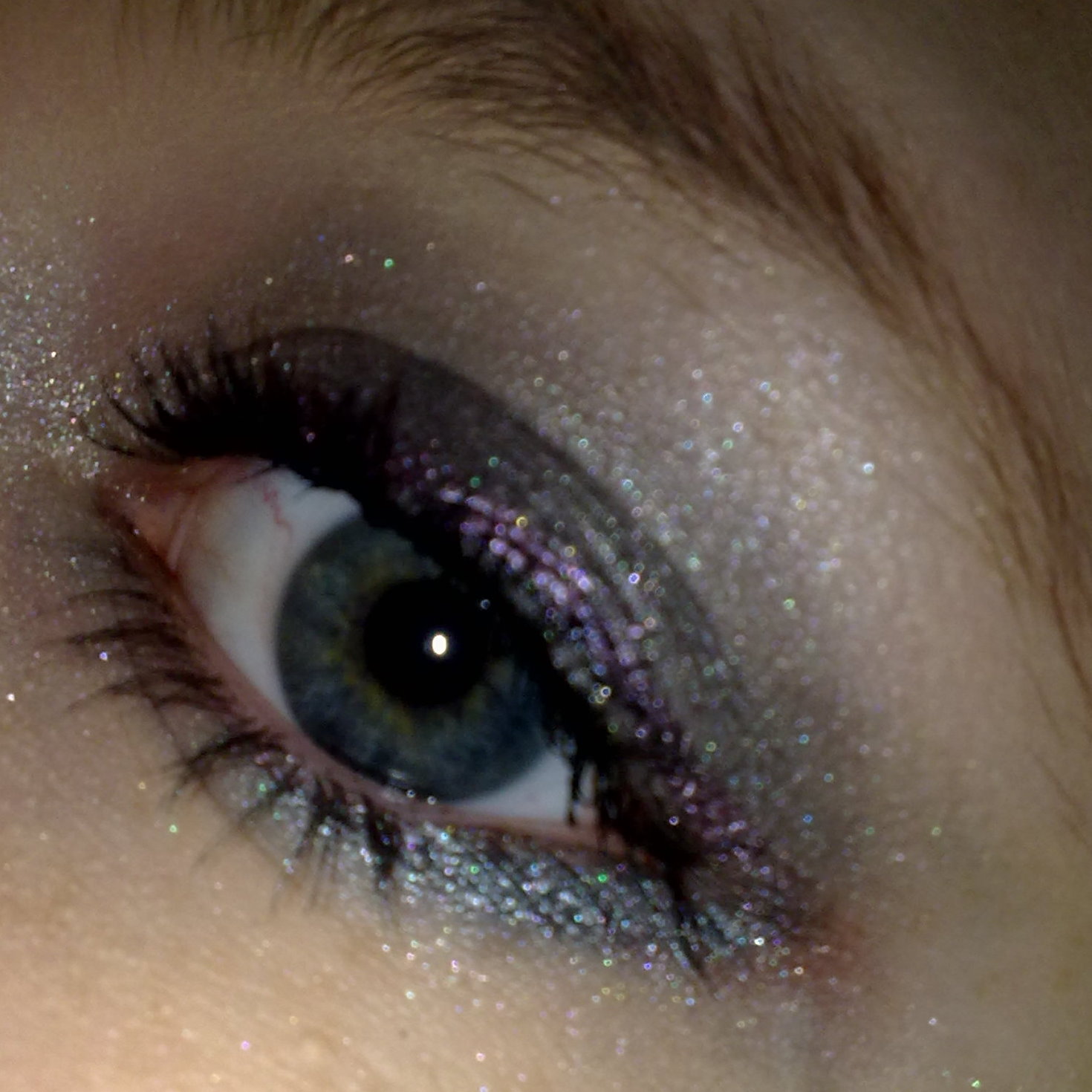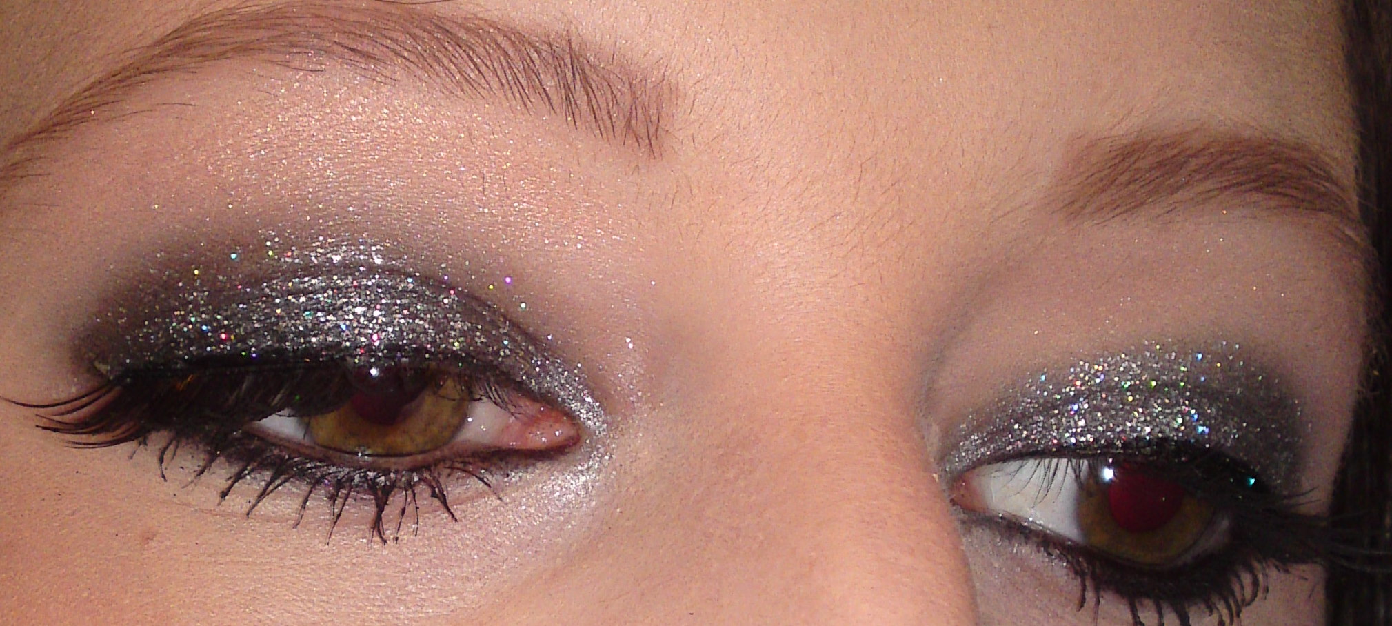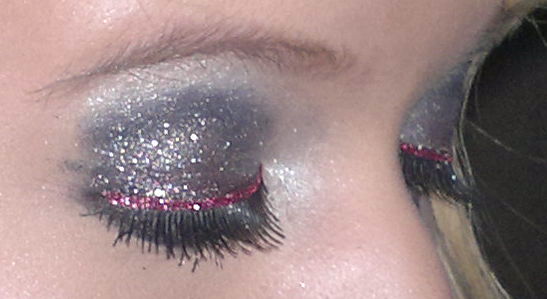 - A. hat auch schwarze Base genommen und zwar Artdeco Base NYX Black Bean und darauf Essence Moonlight Glitter (alle 3) sowie Wimpern von Essence aus der Show off LE