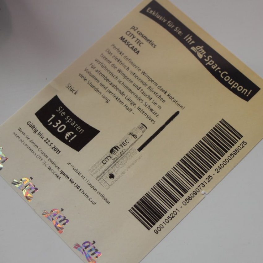 Ein extrem spezieller Tipp, denn die Mädels, die den Kauf einer p2 CityTec Mascara bei dm planen UND gleichzeitig eine PAYBACK-Karte haben, dürfte überschaubar sein. Aber warum verschweigen, wenn ich den Coupon per Zufall am Automaten gesichtet habe? 1,30€ günstiger ist bei einem Verkaufspreis von 6,45€ schon OhhhKeee, denn ich kann mir vorstellen, dass nicht viele Kunden bereit sind das Doppelte der anderen p2-Mascaras zu bezahlen, nur weil das Ding vibriert – so leicht sind wir Frauen doch nicht rumzukriegen – und ein wenig Elektronik ist dann doch eher Männerargument.