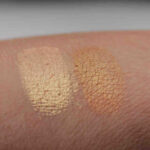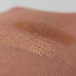 Ich war im Geschäft recht angetan von der Optik und hatte den Verdacht, es handle sich um eine Alternative zum beliebten MAC Pigment ‚Melon‘. Ich habe mich geirrt. Nur aus einem sehr schrägem Blickwinkel und bei einer besonderen Beleuchtung sehen beide sich ähnlich (Swatch-Bild Nr. 6), wenn ihr Goldglanz dominiert. Ansonsten ist p2 ‚Dreamy‘ der fasstenreichere Ton, jedoch mit weniger Brillanz und weniger bequemer Textur.