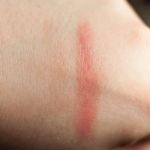 Die Nuance 002 hellt meine Lippen ein wenig auf und schenkt ihnen einen kühleren Rosa-Touch. Sehr subtil. Man sieht dennoch einen Tick „gemachter“ aus. Ein goldener Schimmer, wie das offizielle Produktfoto suggeriert, gibt es jedoch nicht.