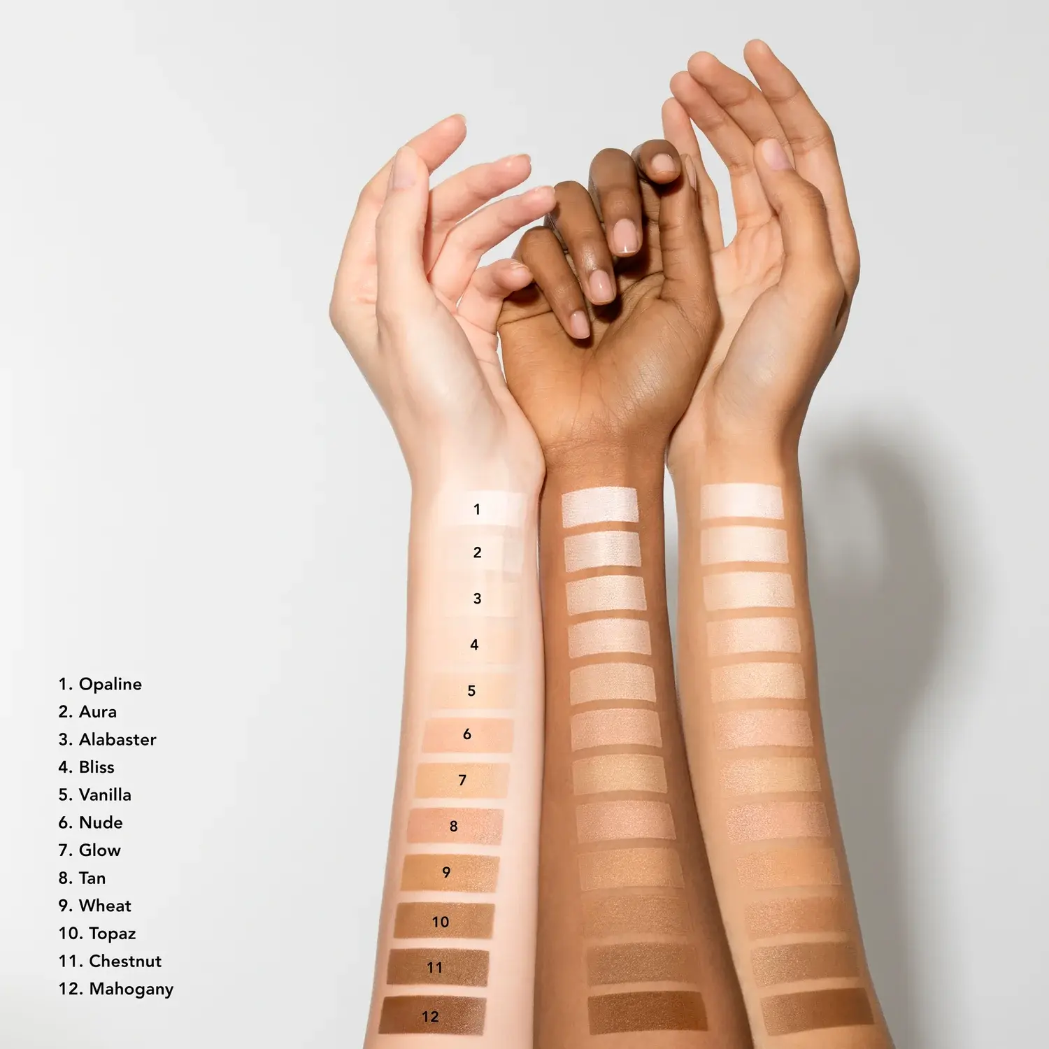 Inactive: Aqua, Methyl Trimethicone, Neopentyl Glycol Diethylhexanoate, Butylene Glycol, Mica, Glycerin, Dimethicone, Diphenylsiloxy Phenyl Trimethicone, PEG-9 Polydimethylsiloxyethyl Dimethicone, Pentylene Glycol, Magnesium Sulfate, Disteardimonium Hectorite, Dimethicone/PEG-10/15 Crosspolymer, Polyglyceryl-2 Diisostearate, Caesalpinia Spinosa Fruit Extract, Stearic Acid, Aluminum Hydroxide, Alumina, Kappaphycus Alvarezii Extract, Tocopherol, Isostearic Acid, Spirodela Polyrhiza Extract, Alcohol, Rosa Damascena Flower Water, Leontopodium Alpinum Flower/Leaf Extract, Buddleja Davidii Extract, Thymus Vulgaris (Thyme) Flower/Leaf Extract, Camellia Sinensis Leaf Extract, Lonicera Japonica (Honeysuckle) Flower Extract, Glycine Soja (Soybean) Protein, Sodium Dextran Sulfate, Superoxide Dismutase, Ethylhexylglycerin, Phenoxyethanol, Sodium Benzoate, Potassium Sorbate, [+/- Iron Oxides (CI 77491, CI77492, CI 77499)].