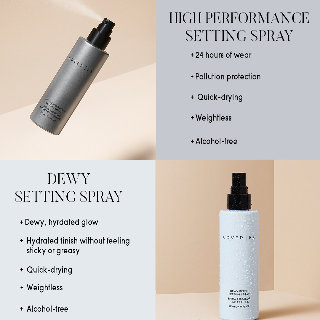 Das COVER FX Dewy Setting Spray ist nach dem Illuminating und dem Mattifying Spray das gemeinsam mit dem High Performance das neue Finishing Mist der Marke. Ohne alkohol sorgt es für ein länger anhaltendes Makeup und schenkt zugleich einen gesunden Glow – dabei jedoch subtiler als die Illuminating-Variante.