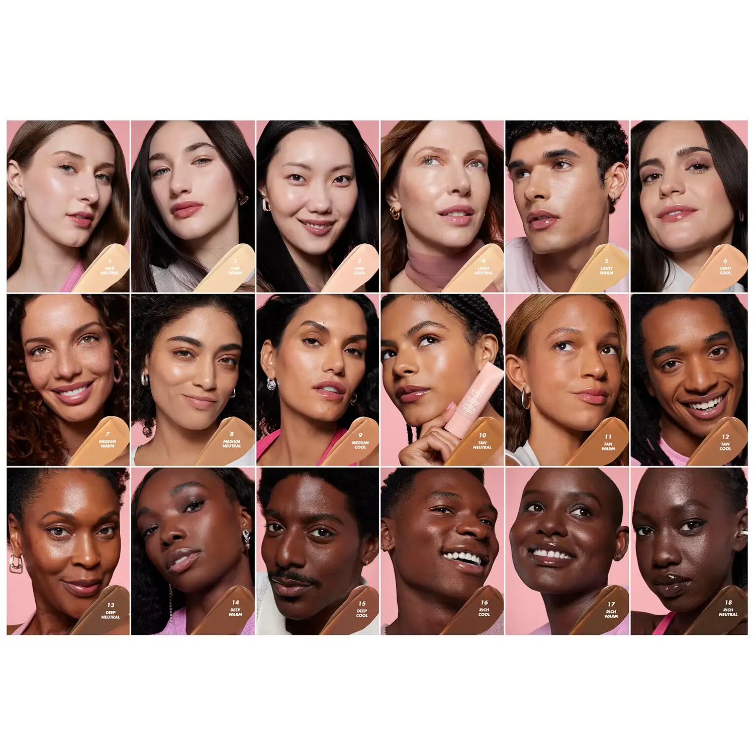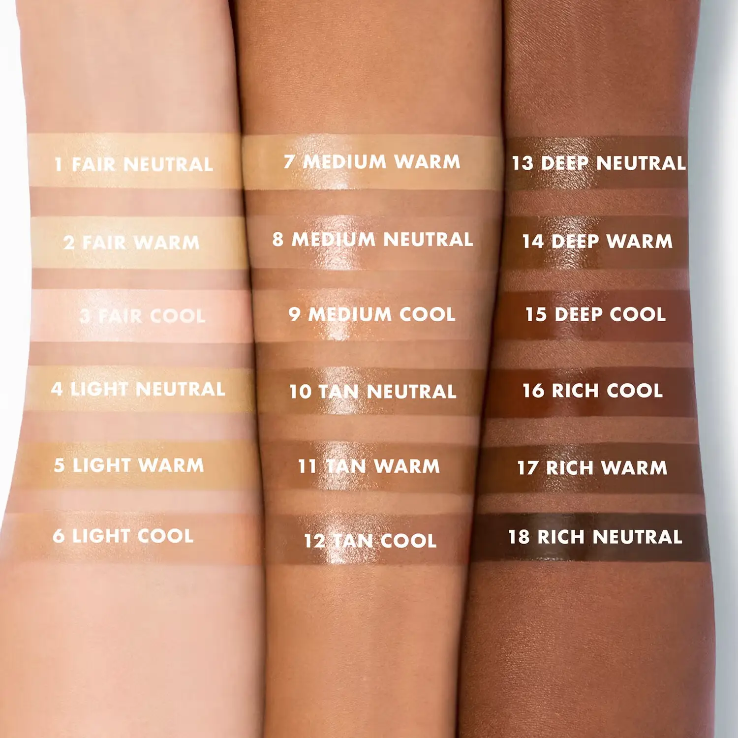 - Available in 18 flexible shades (6 shade families with 3 undertones each)