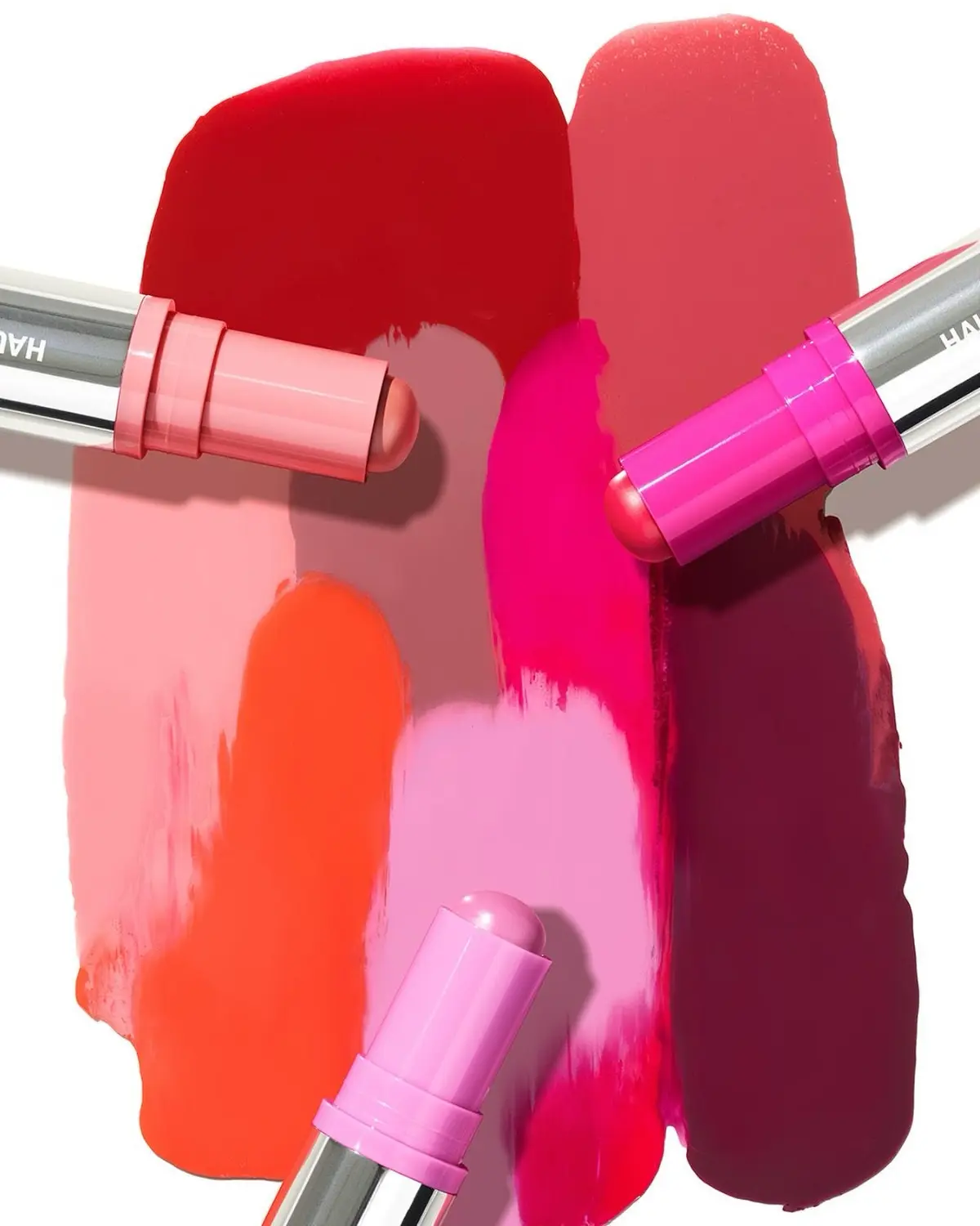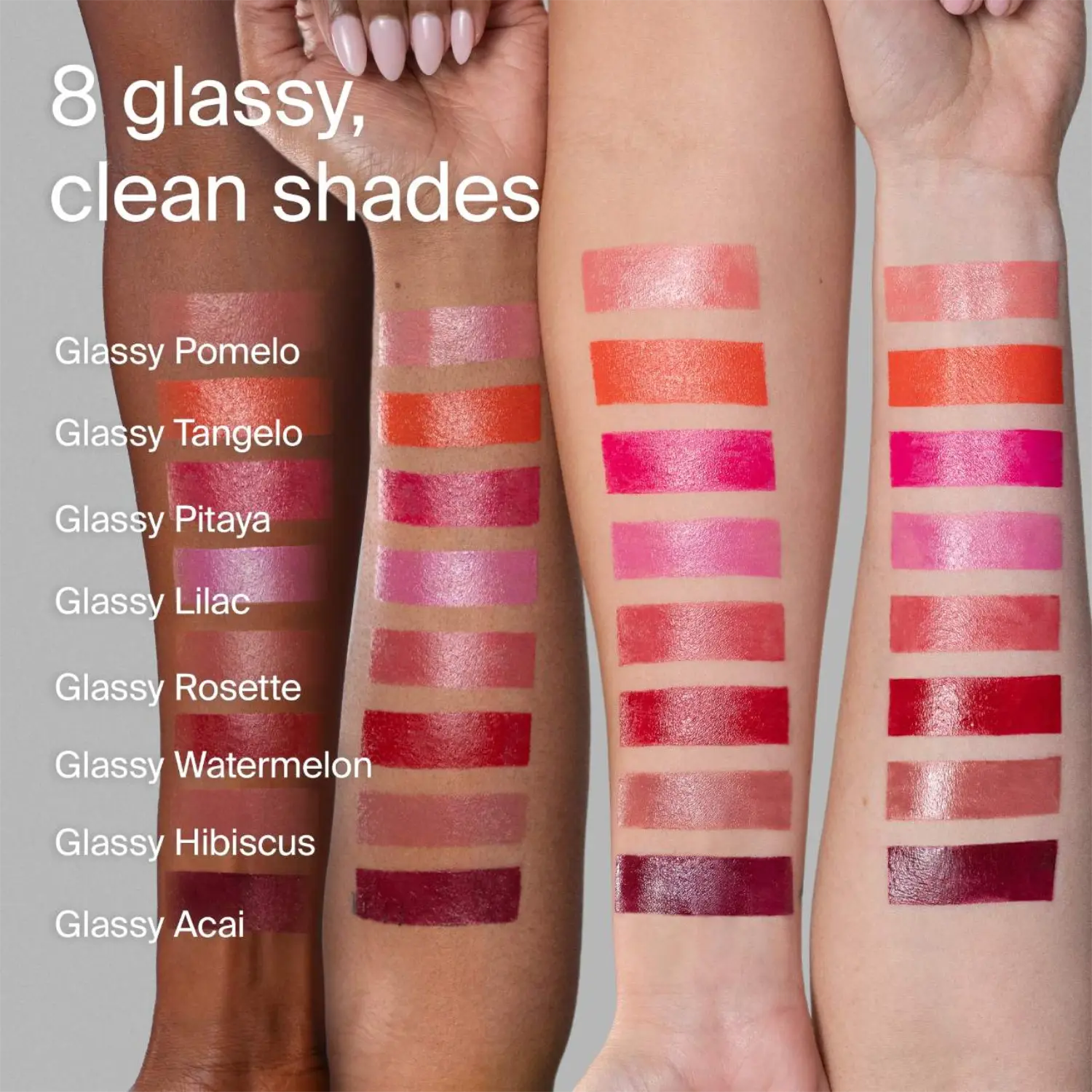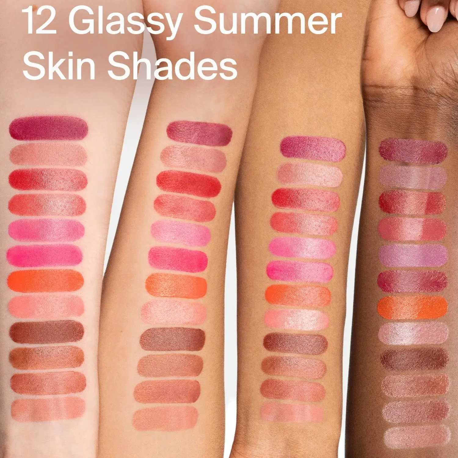 A serum-based, high-pigment blush with 70%+ skincare and proprietary complexes that hydrate and make skin look more plump in a longwear, glassy balm.