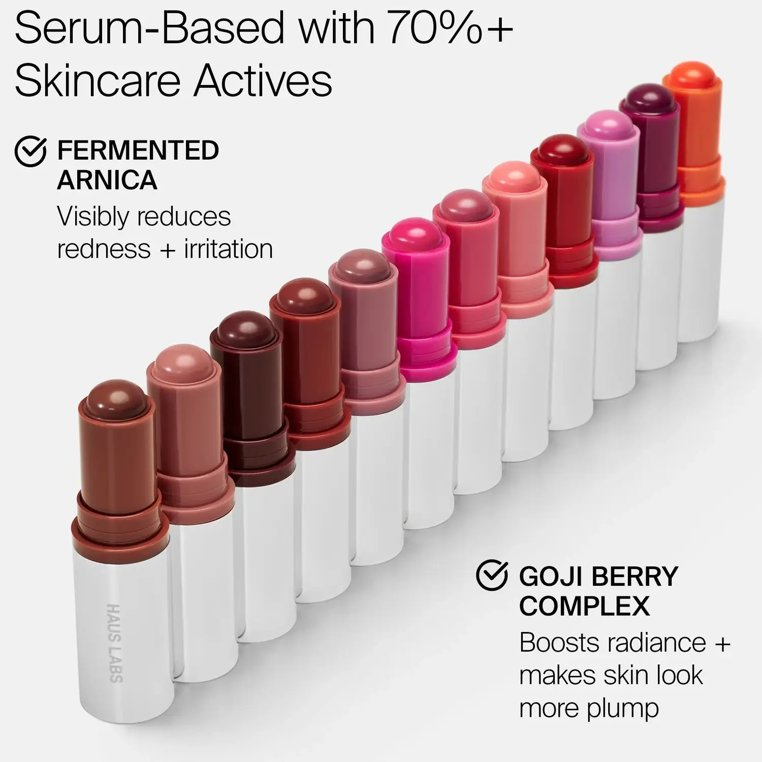 Born as a skincare serum stick, this blush delivers high-performance color while goji berry complex makes skin look more plump and fermented arnica visibly reduces redness and irritation.