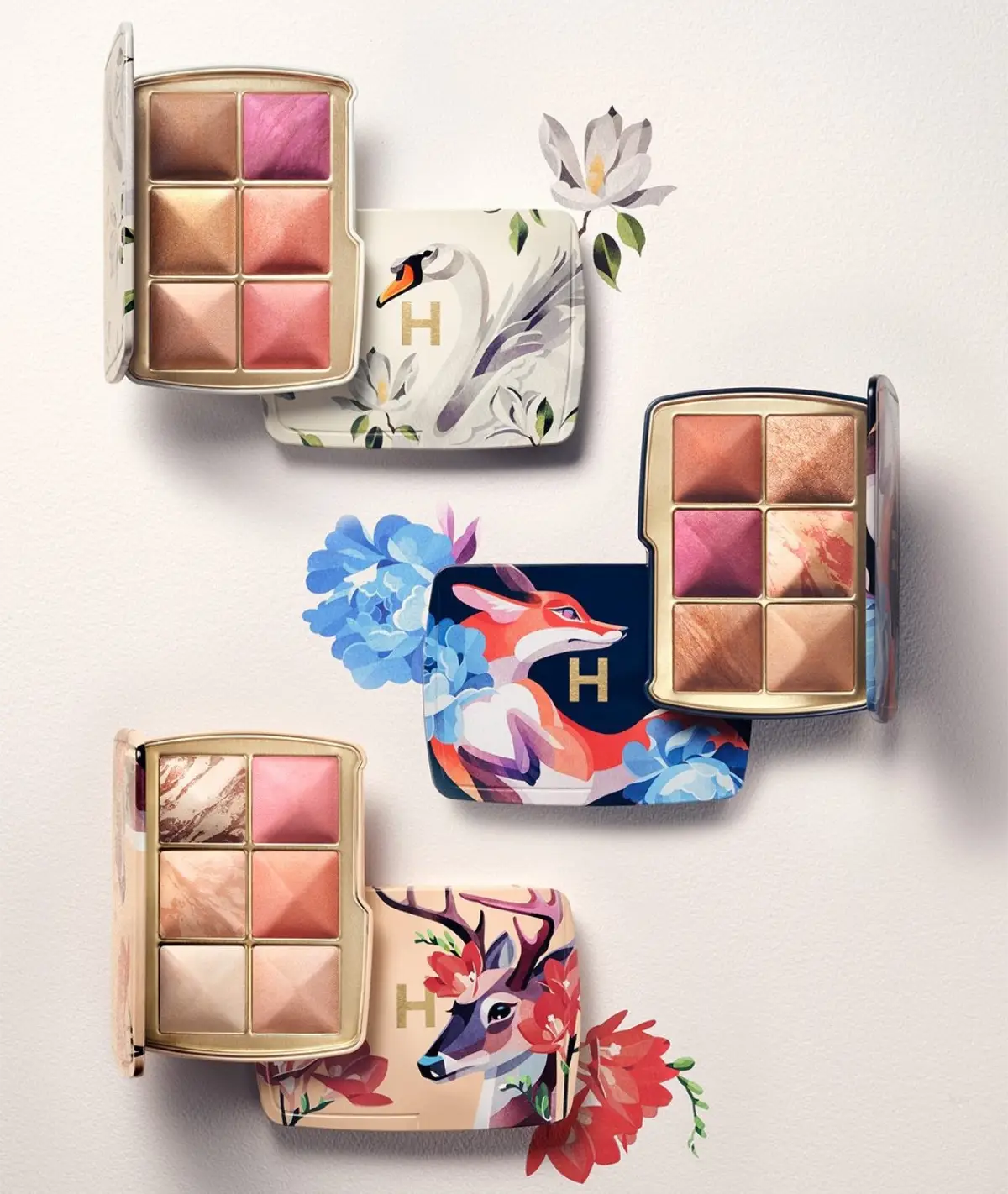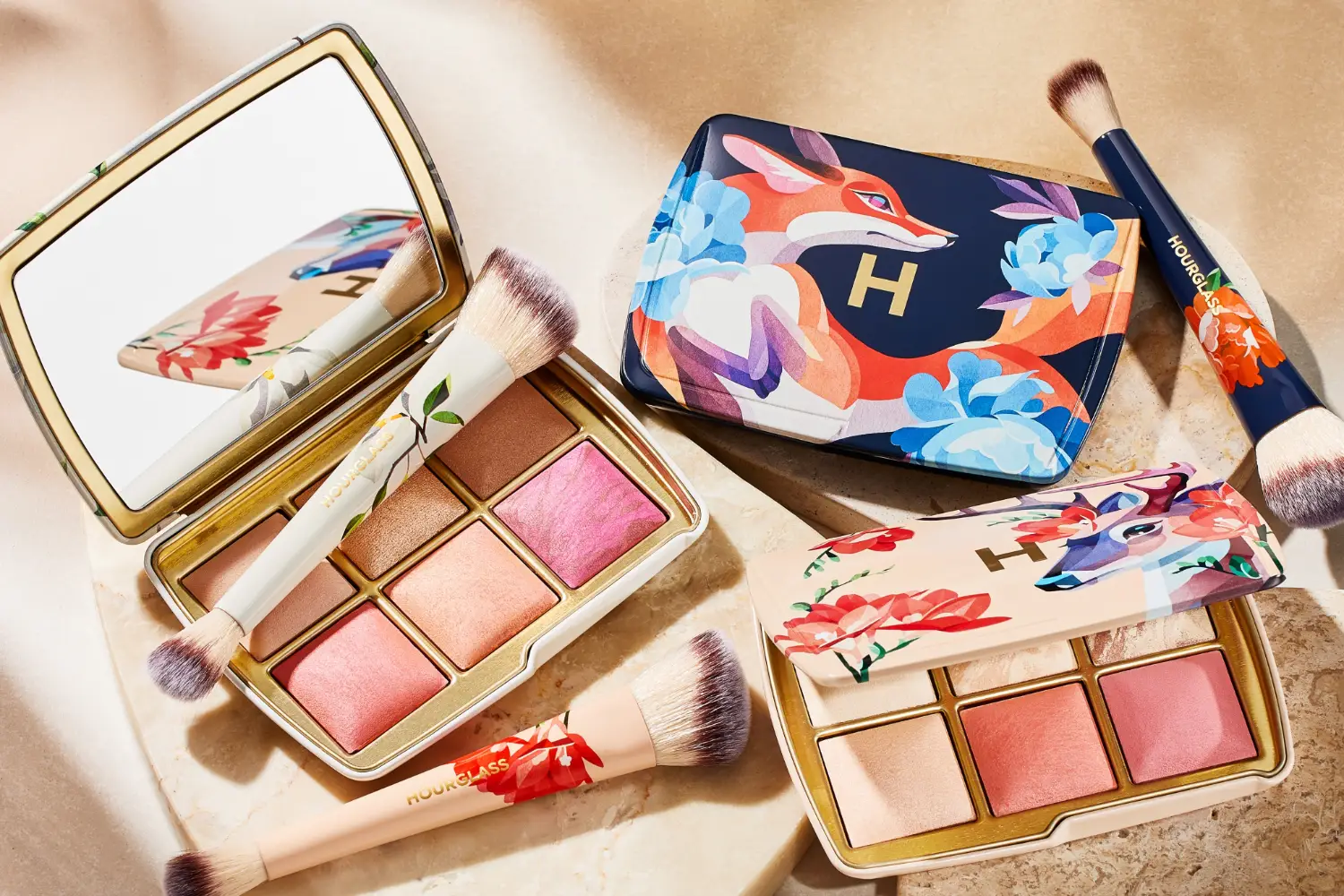 - FOX: Featuring exclusive fox artwork in Sasha’s signature watercolor style, this palette includes one bestselling blush and five new shades of finishing powder, blush, bronzer, and highlighter to diffuse, enhance, and add glow to the complexion.