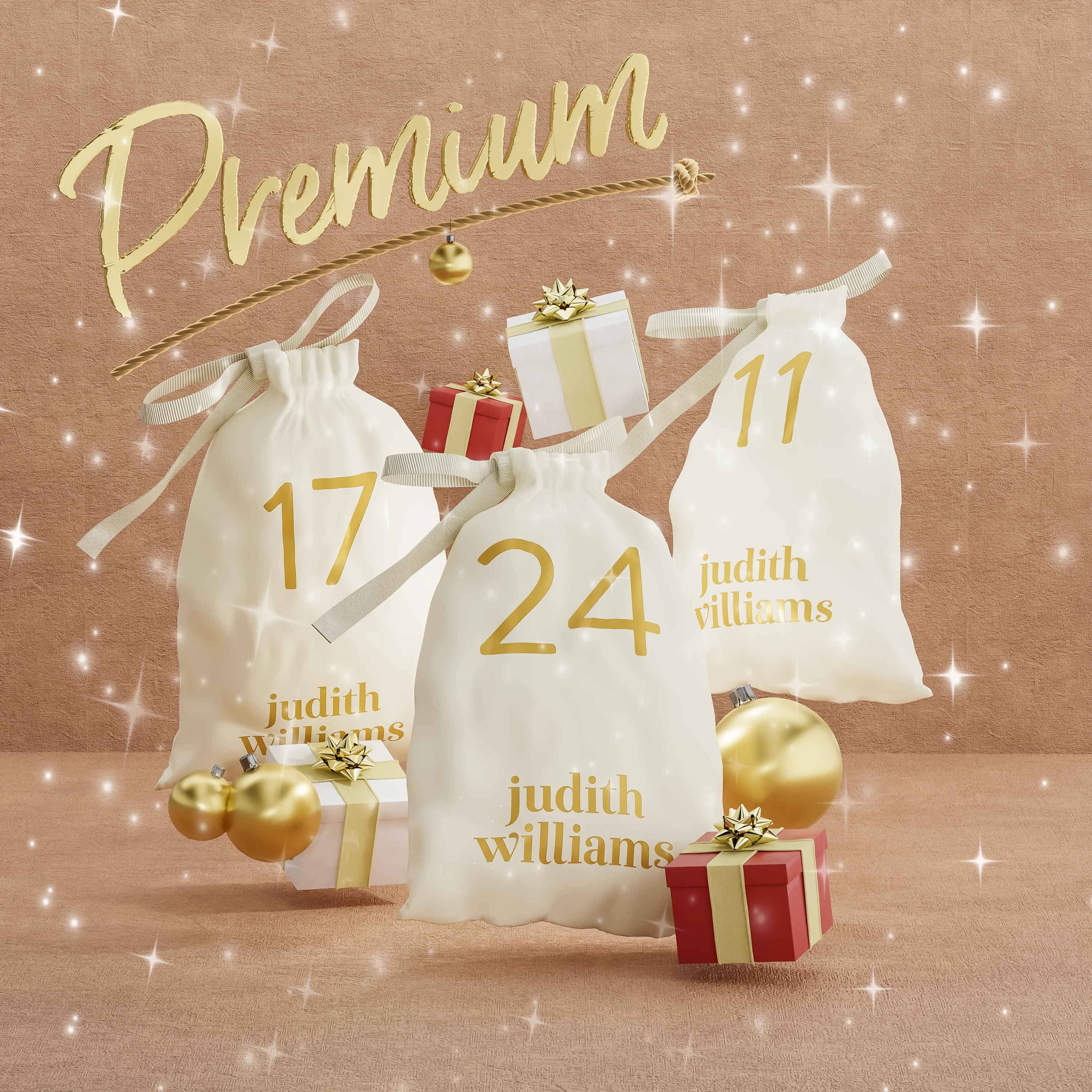 Dieser Advent wird besonders luxuriös, denn jetzt versüßen dir die 24 Premium Beauty-Überraschungen von Judith Williams Cosmetics die Vorweihnachtszeit. Die hochkarätigen Pflege- und Make-up-Highlights schenken jeden Tag ein Beauty-Fest für alle Sinne. Enthalten sind unter anderem ausgewählte Lieblinge aus Premium-Linien wie Retinol Science, DermaPerfect und Luxury Diamond sowie verschiedene Make-up Highlights – natürlich alles in Originalgröße. Diesen Kalender gibt es in zwei Versionen: mit und ohne Geschenksäckchen. Falls du noch die Säckchen vom vergangenen Jahr zuhause hast, kannst du diese also wiederverwenden.