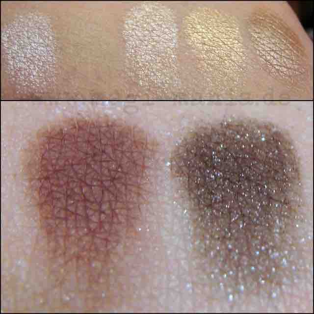 Desweiteren das Duo oben im Artikel, weil der Plaumeton einen schönen, leicht changierenden Goldschleier hat, der mich vom Effekt etwas an MACs „Trax“ erinnert. Und einen Monolidschatten als Basic. Gerade diese hellen Einzellidschatten haben mir gut gefallen. Für 1,49€ absolut OK. 2,49€, der reguläre Preis, wäre mir dann doch etwas zu viel ohne sie genauer zu kennen bzw. da ich solche Farben schon besitze. Wer aber nicht, kann sich ja einmal umschauen.
