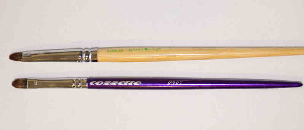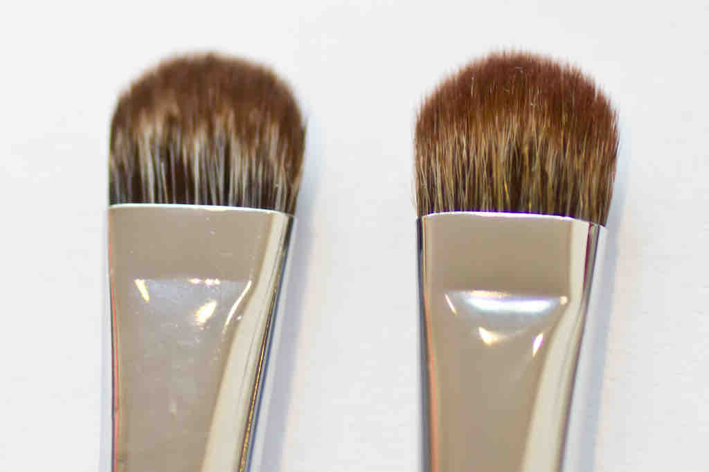 Das ist schlicht ein Fotoproblem. In natura sind beide Pinsel gleich geschnitten.