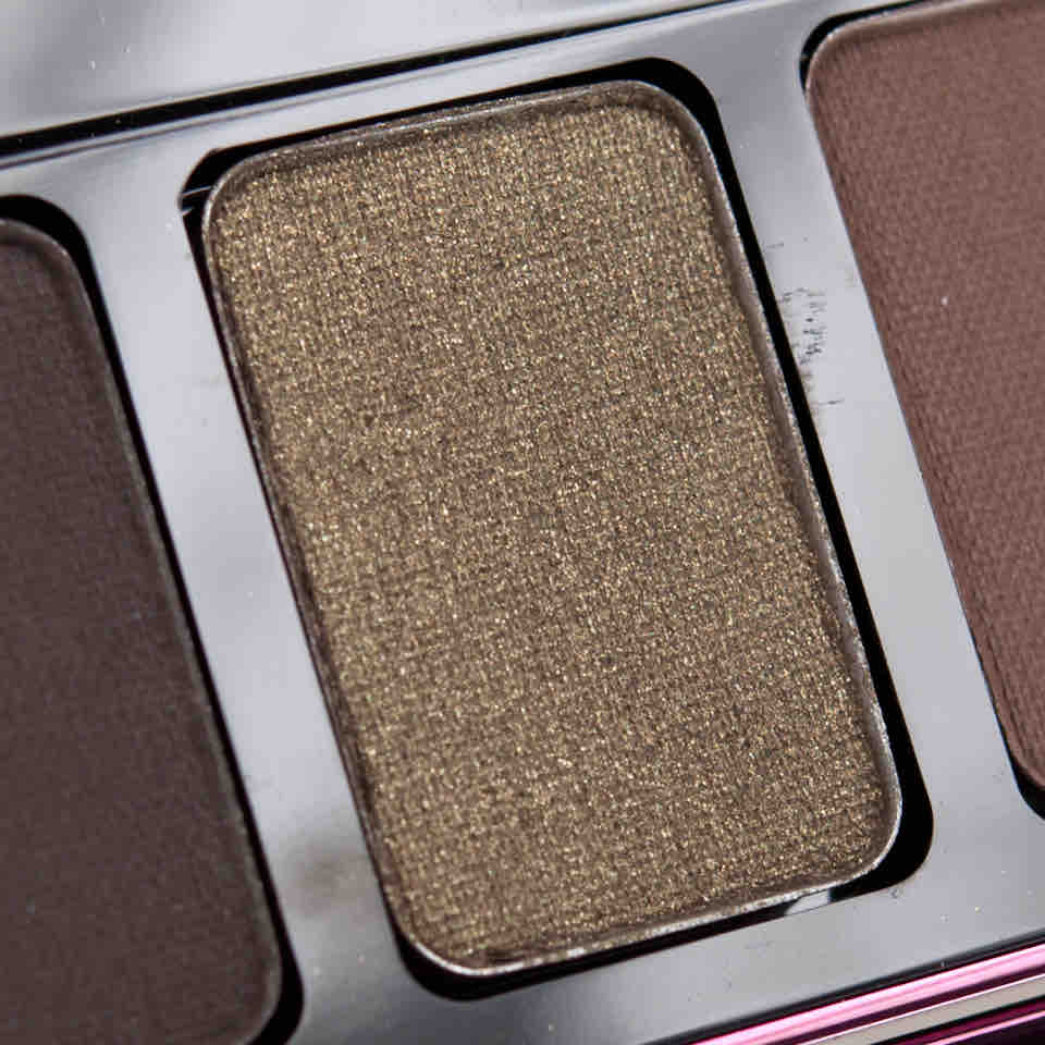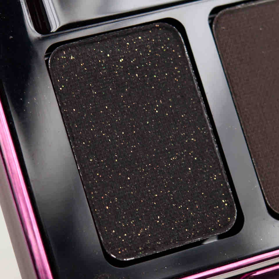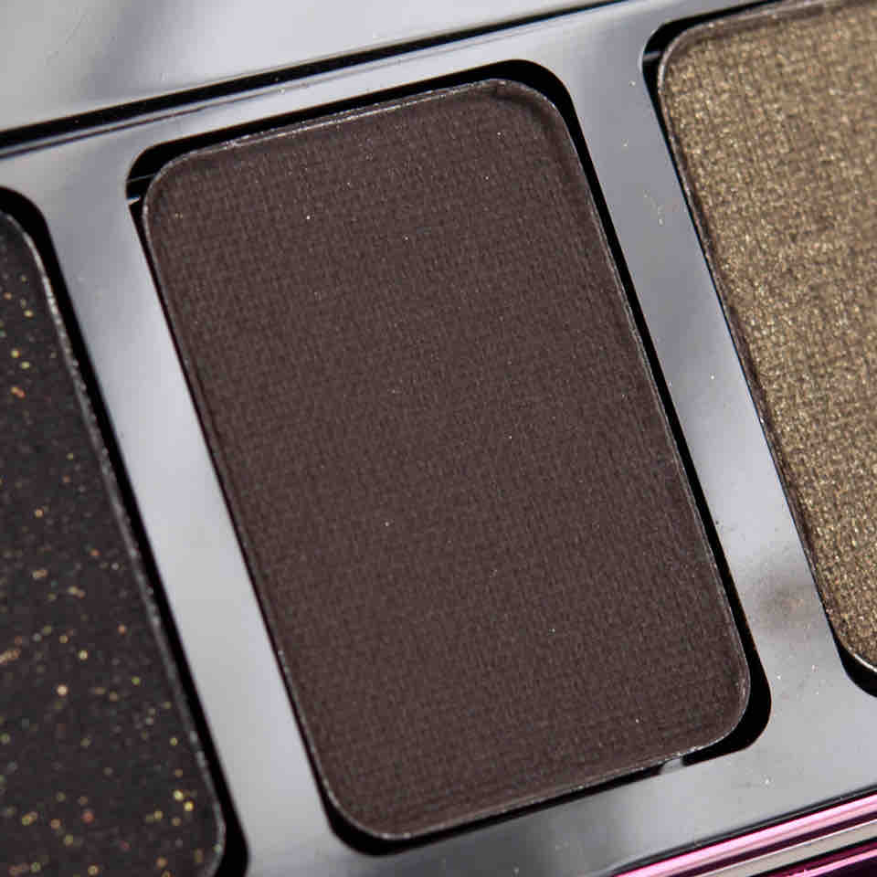 Nr. 3 erinnert mich z.B. grundsätzlich an MAKEUP GEEK ‚Moondust‘, kommt aber lange nicht an ihn heran (in Textur und Effekt) und Nr. 5 entspricht meinem Beuteschema „Gold in Schwarz“ absolut, doch vermischen sich die beiden irgendwie zu sehr. Der letzte Ton suggeriert zwar schimmernd zu sein, ist aber einer der trocken-matten Eyeshadows, die die Partikel nicht halten. Ich zähle sie daher eh immer als matte Farbe und mag sie für Schattierarbeiten. Aber auch diese kenne ich gelungener (NARS Night Series, URBAN DECAY Nakeds). Immerhin ist das dunkelste Braun nicht all zu dunkel und unterscheidet sich so eindeutig vom Schwarz.