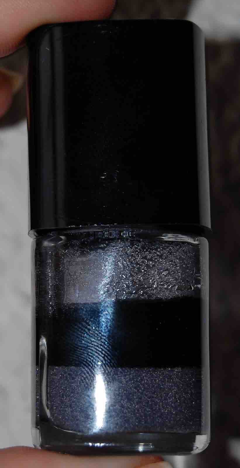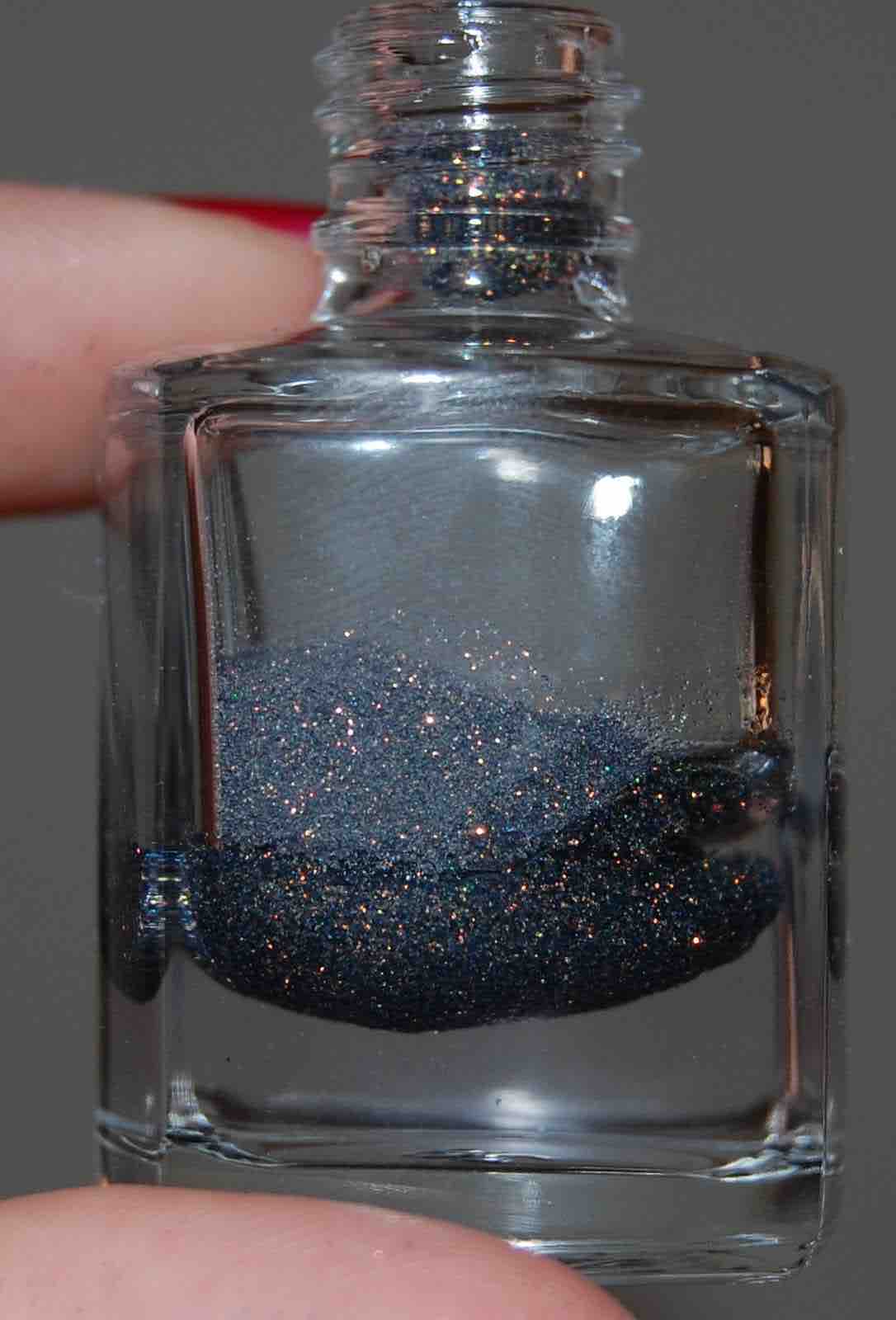 Der Glitter hat sich im Klarlack wohl in seine Bestandteile aufgelöst :-(. Übrig ist dunkler Lack und aus dem Glitter ist irgendetwas Schlammartiges geworden, das sich am Boden der Flasche abgesetzt hat. Es glittert da in dieser Flasche leider gar nichts mehr *heul*
